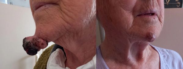 Photos: Betty had a big cancerous tumor on her chin. She has a history of using natural medicine and tried many natural remedies with no success.